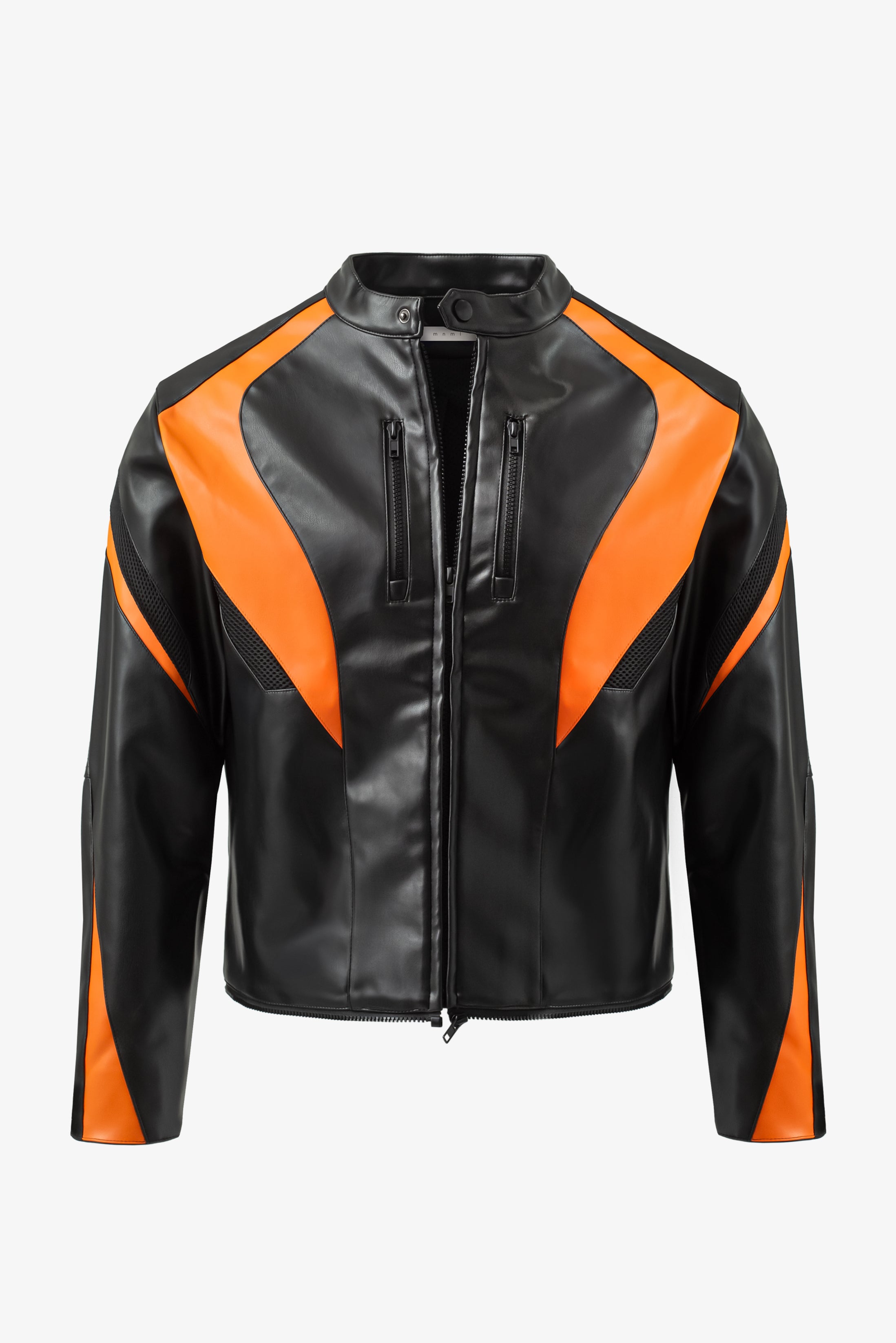 Cropped Leather Race Jacket - Black/Orange
