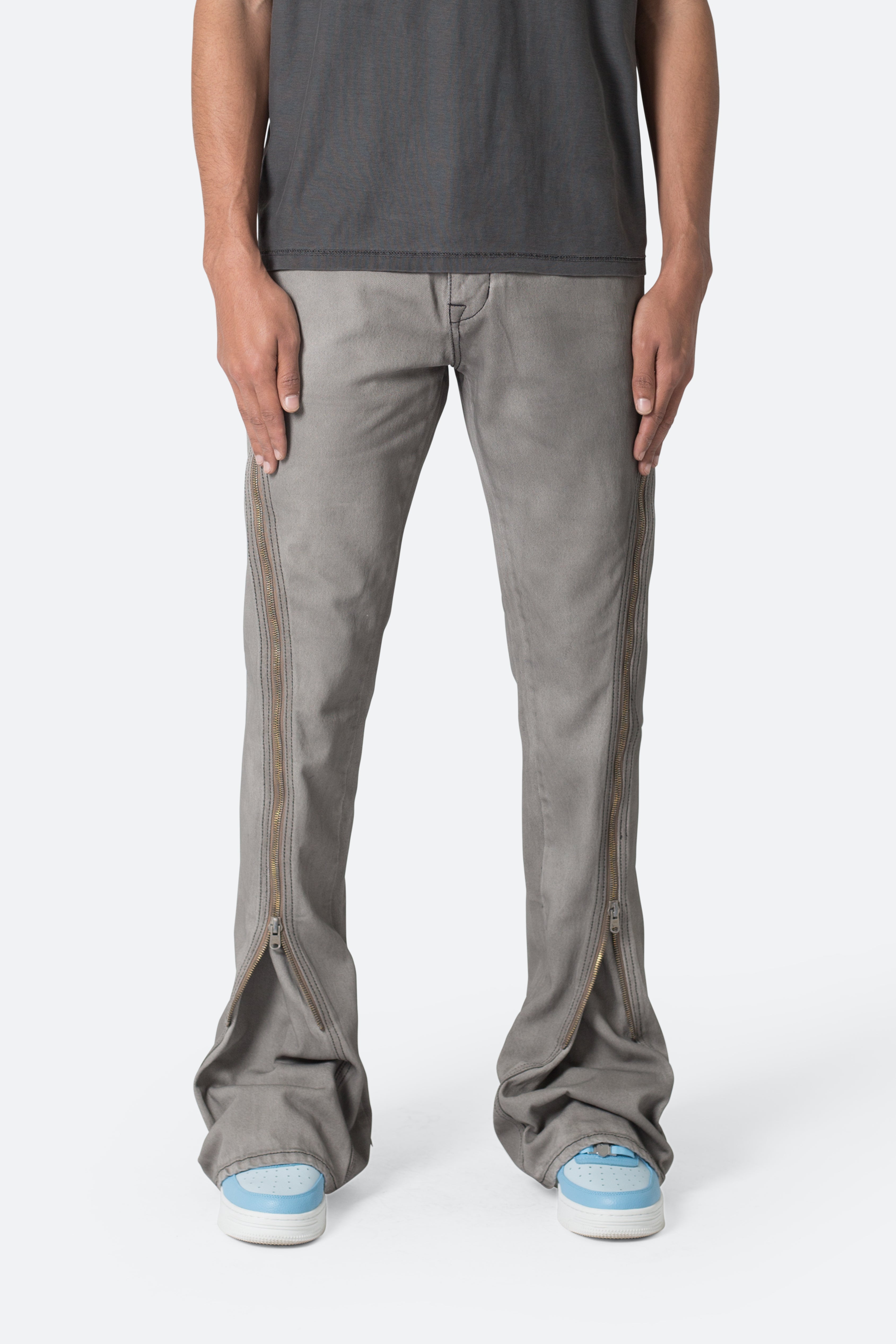 D519 Zipper Flare Denim - Grey