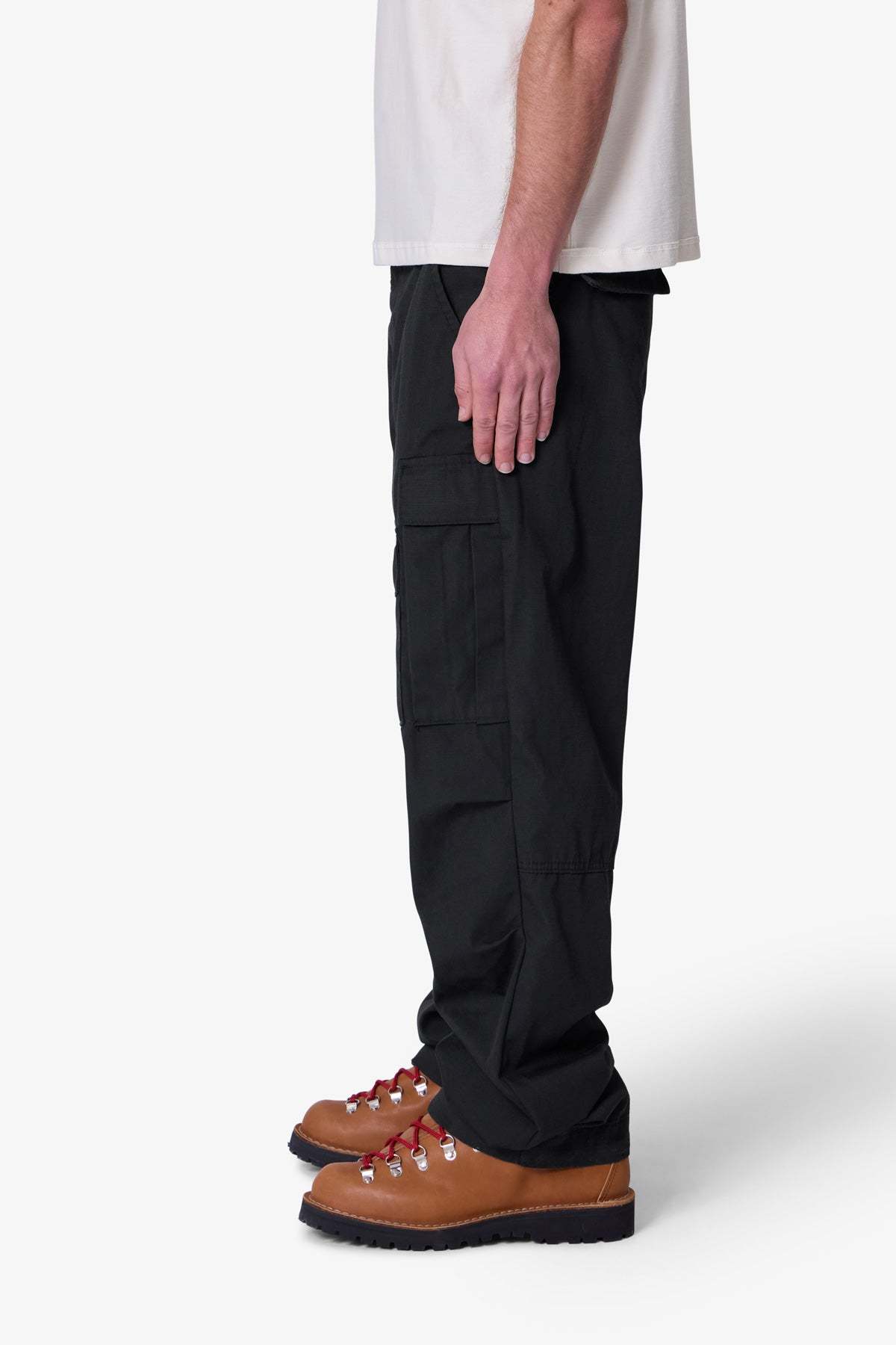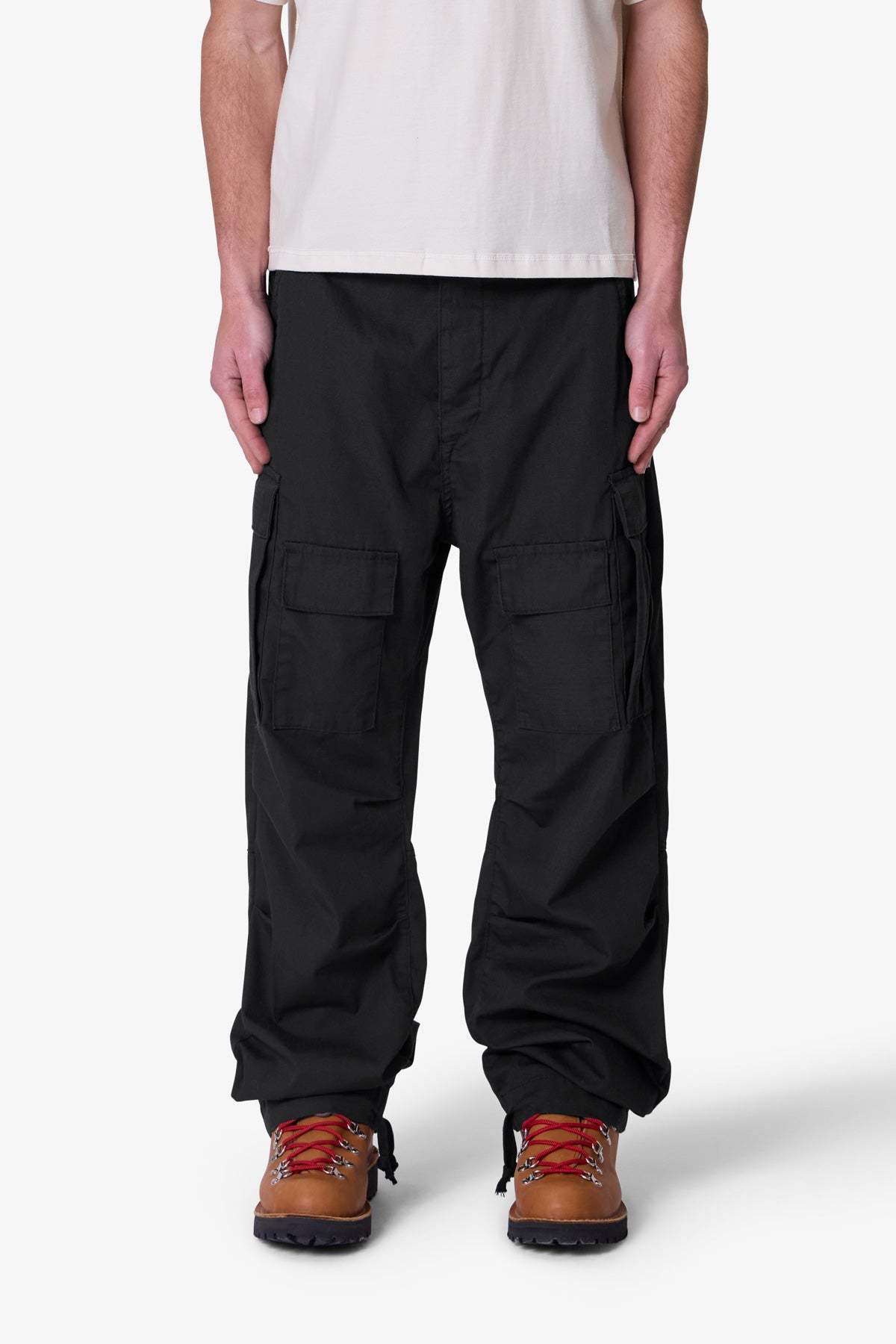 the Ultra Baggy Cargo Pants are designed with a new oversized ultra baggy fit, constructed from a ripstop fabric with a rinse wash, featuring cargo pockets throughout with snap closures, and finished with a button placket.