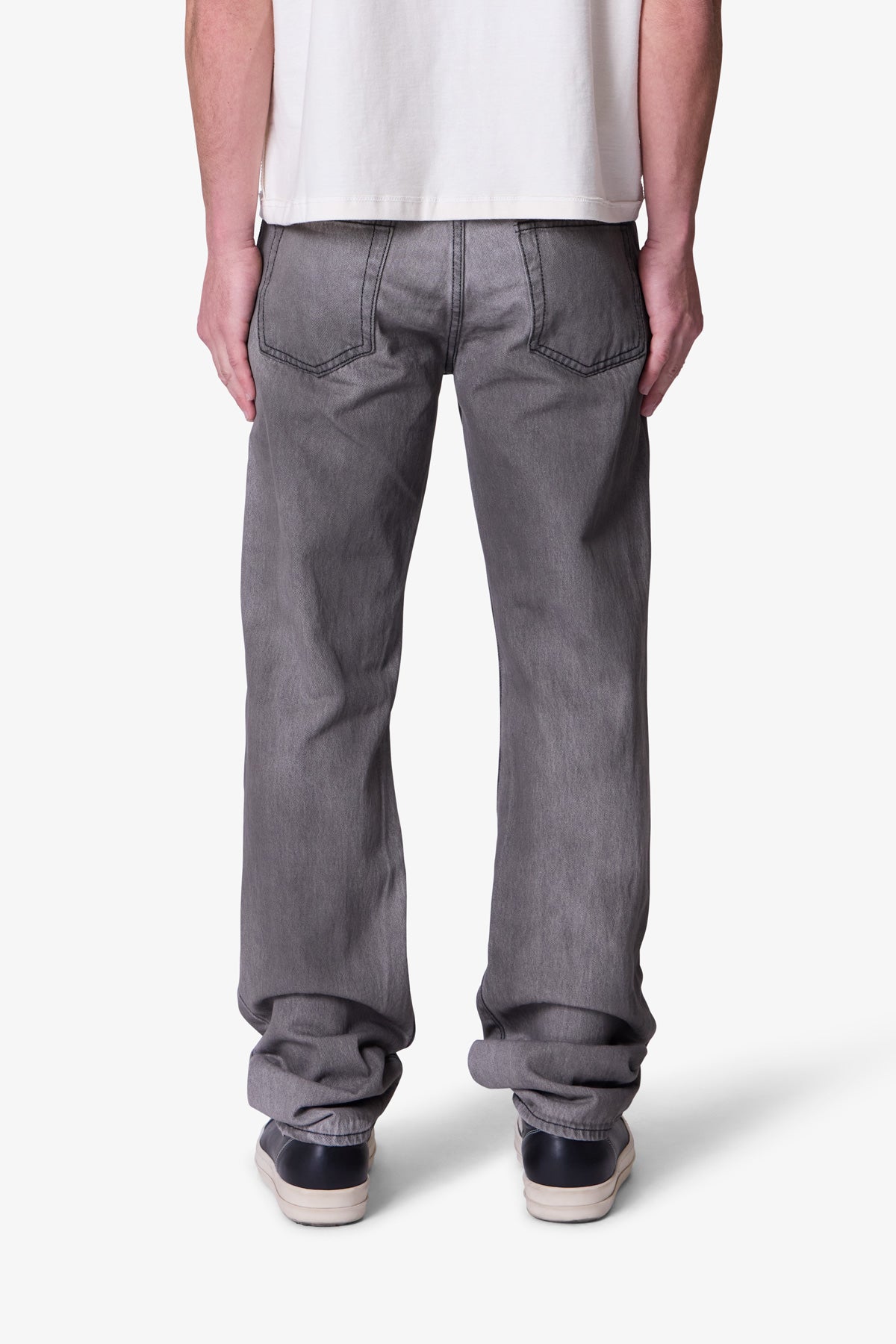 the new Straight Denim are designed with our new and updated relaxed fit, which is relaxed throughout for increased comfort and updated look, and is constructed from 100% 13 oz black cotton denim with a heavy vintage wash, and finished with traditional five pocket denim details.